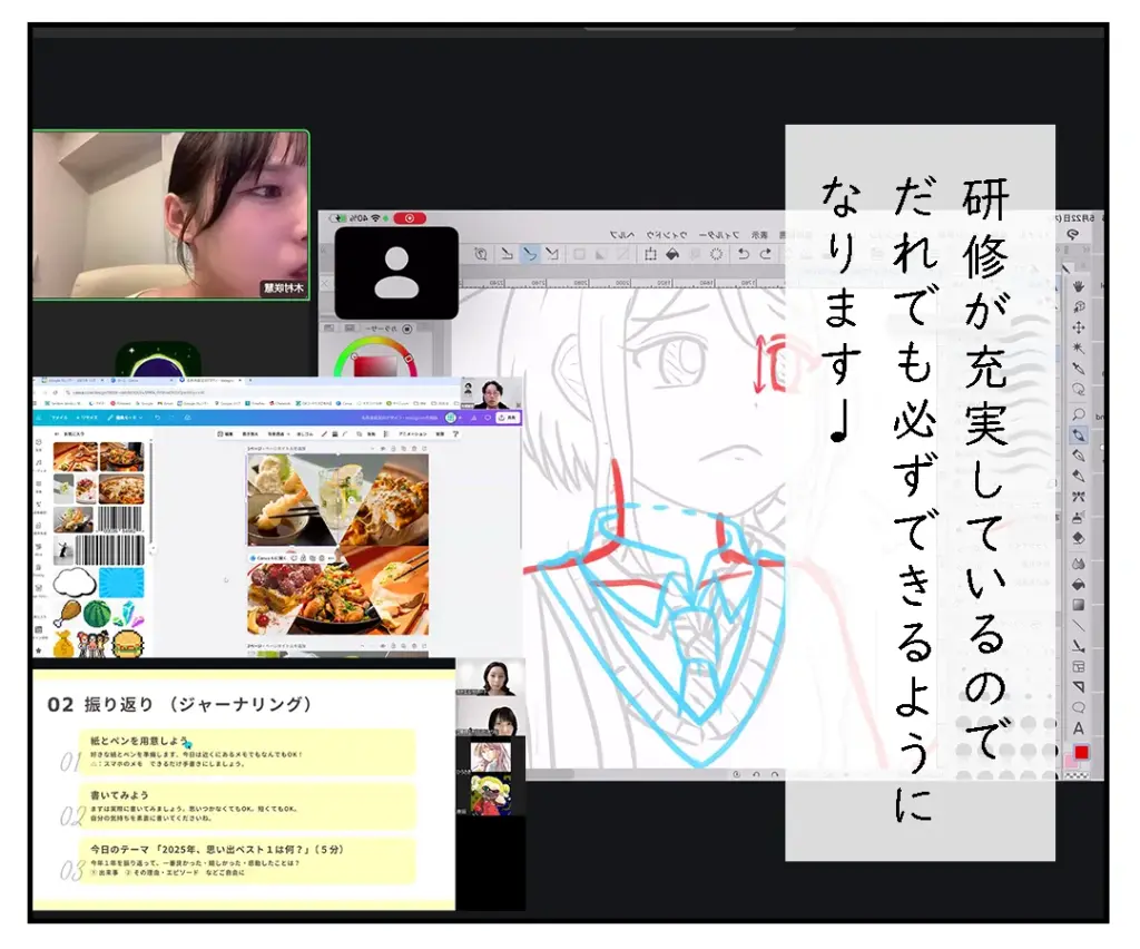 ※画面に顔が映っているのは講師の先生です。利用者の方のほとんどは、カメラオフで参加しています。質問は、チャットか、マイクで質問ができます。